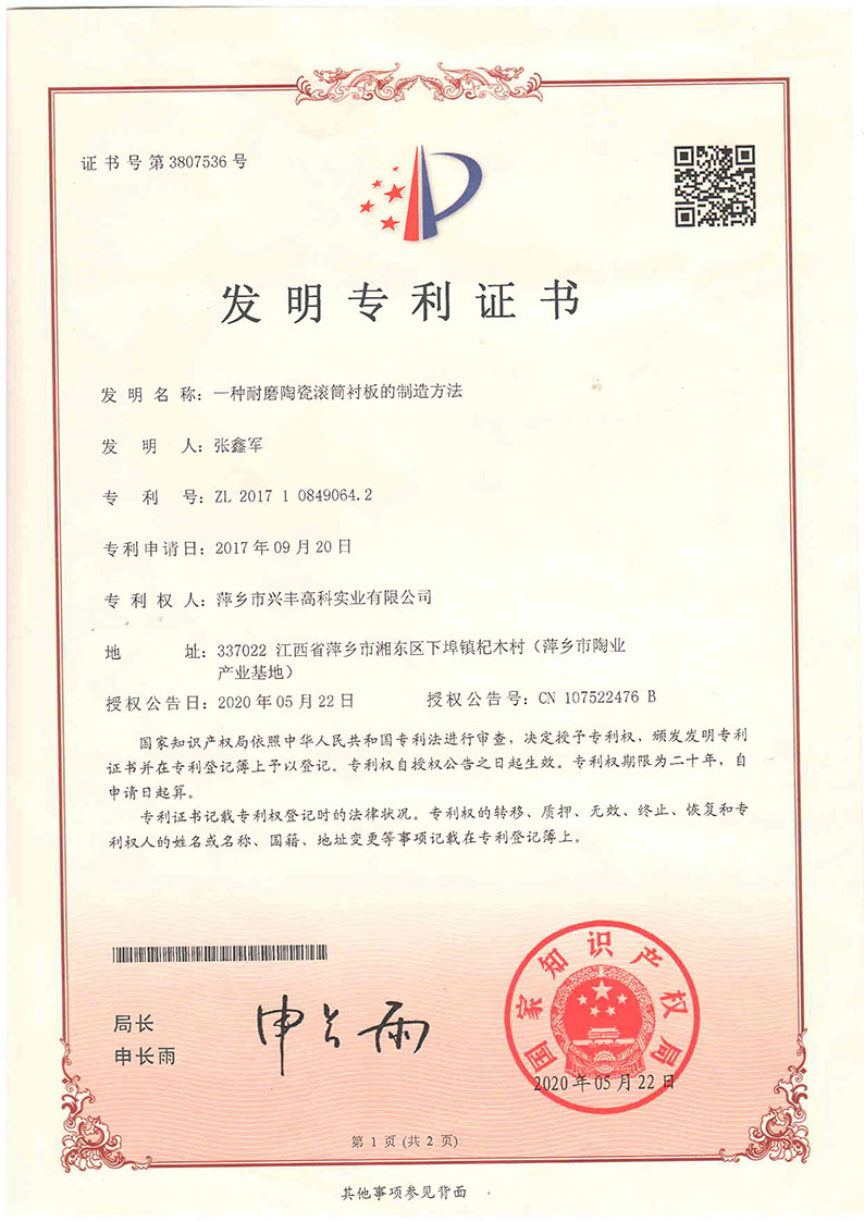 發(fā)明專(zhuān)利證書(shū)(簽章)